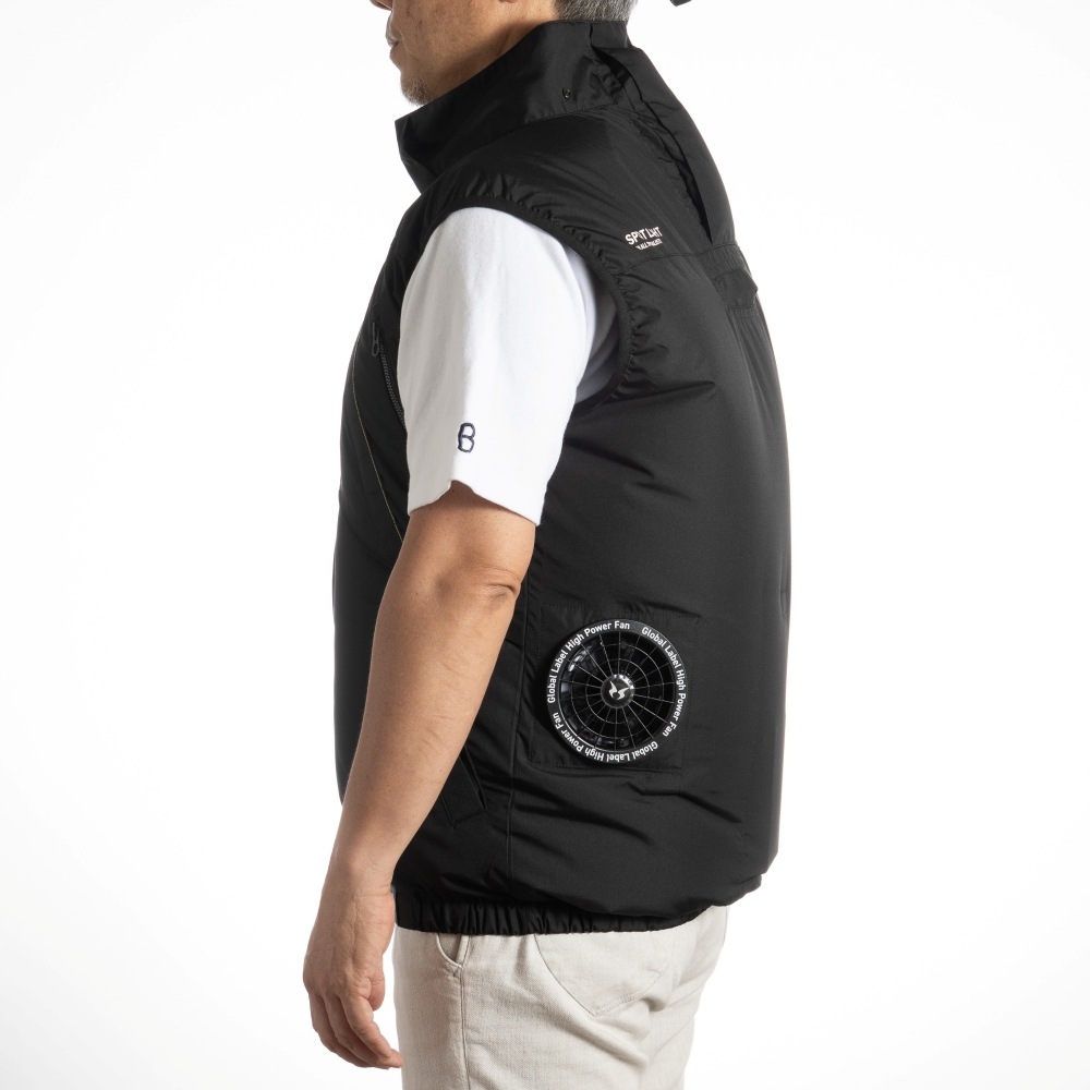 身体の中を涼風が駆け巡り、体温を上手に下げてくれます。このベストの優れている点は、背中から首にかけてよりスムーズに風が巡る“風気路”設計がされているところ。 襟が立つデザインになっているので、汗をかきやすい首元までしっかり風が通ります。