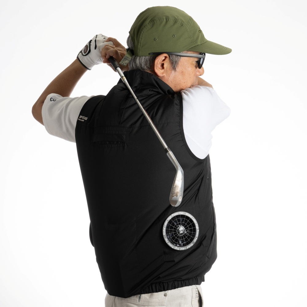 夏のゴルフは本当に暑い! 熱中症対策の一つとして、ファンとバッテリーを取り付ける空調ベストはいかがですか?