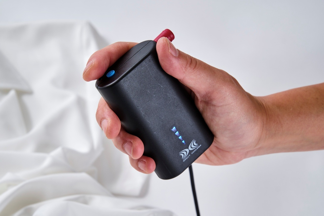 約143gと小型バッテリーながら、最大出力の7.2Vから3.3Vと、バッテリーの持ち時間を延ばす「ゆらぎモード」まで5段階に風量調節ができます。使用状況によりますが、7.2Vで約4時間、6Vで約6時間連続して使用が可能。