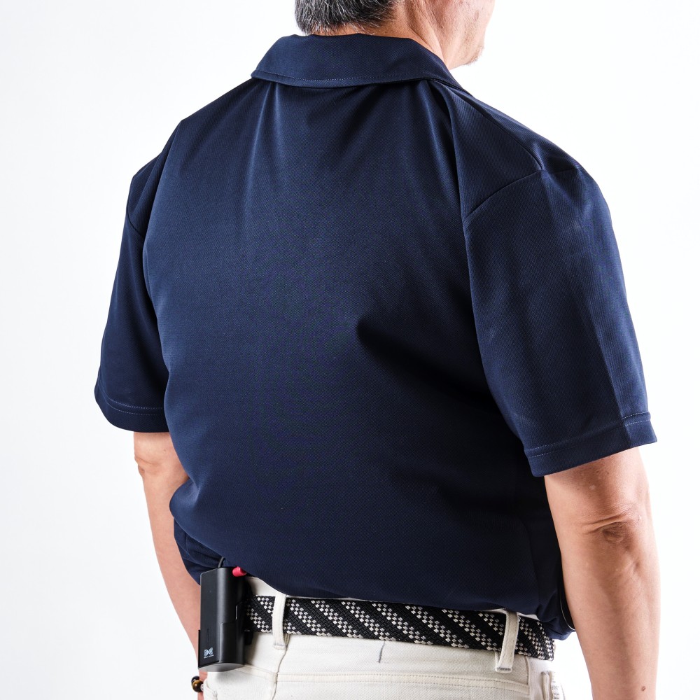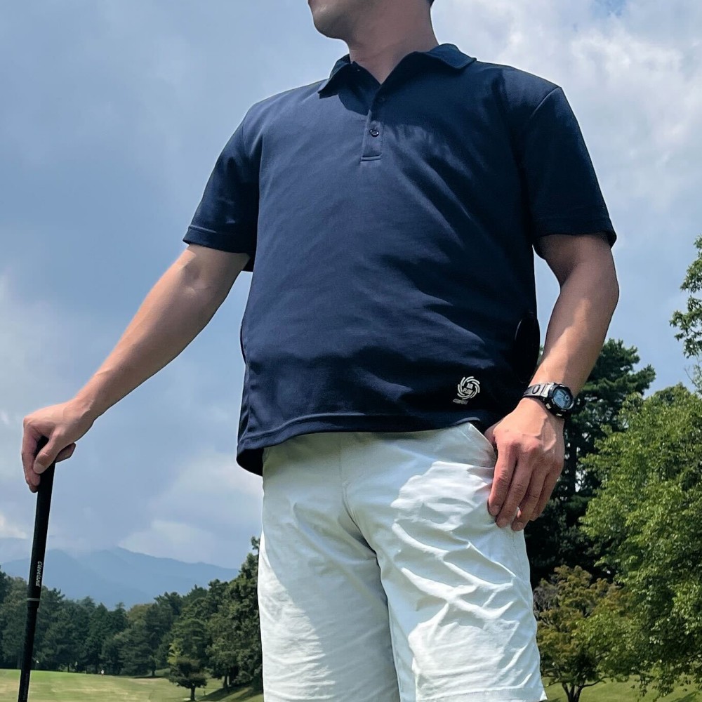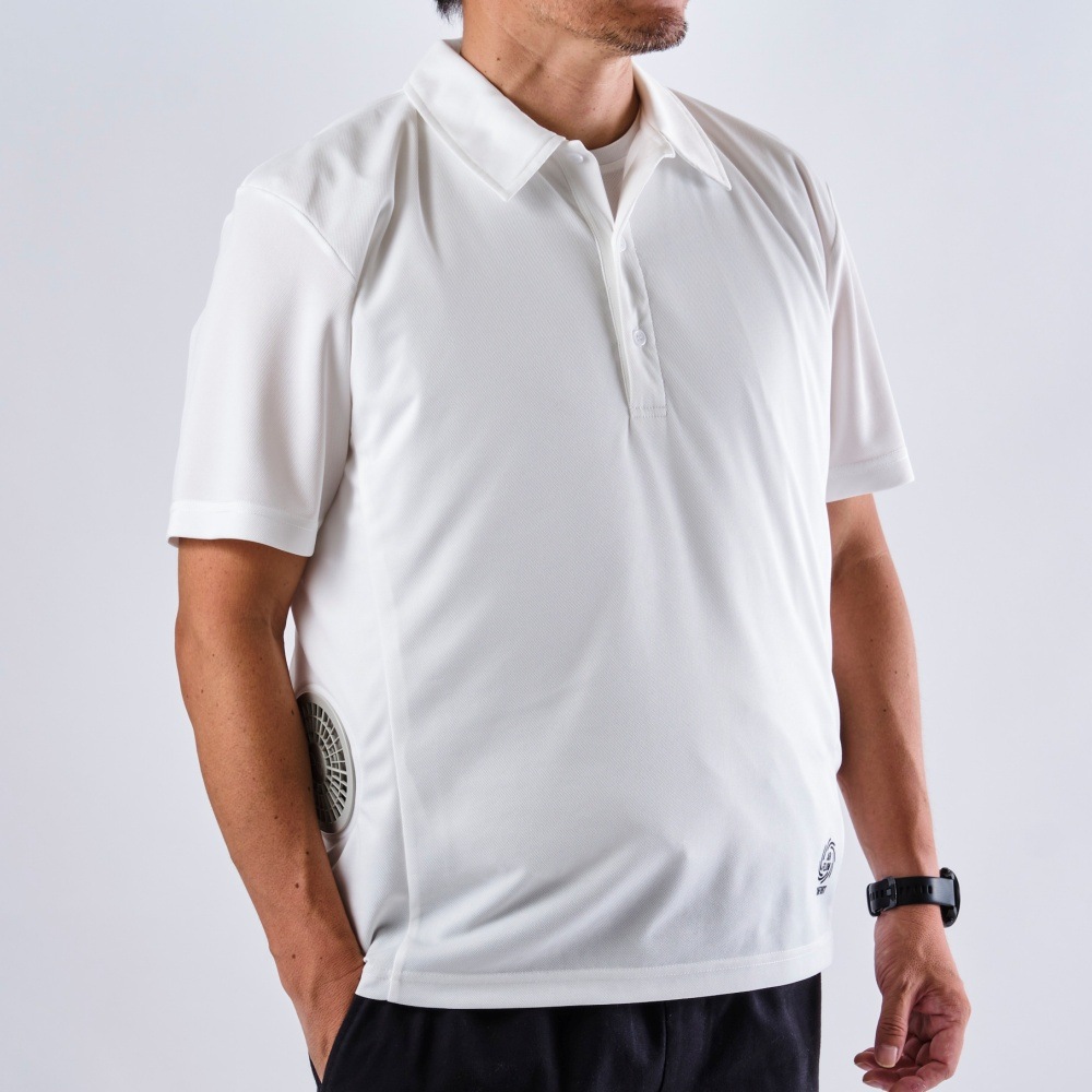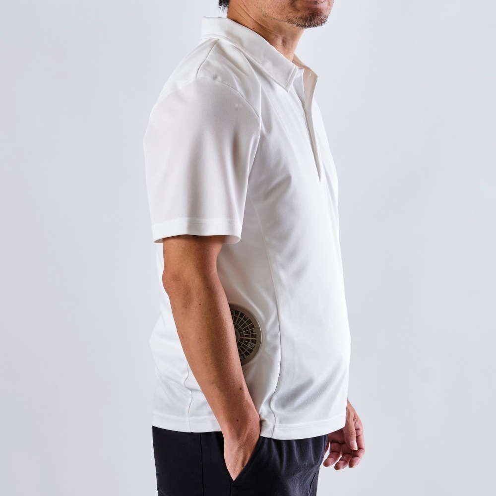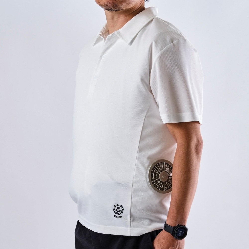 ファン付きベストも涼しいけれど、灼熱のゴルフ場でポロシャツの上にもう一枚ベストを着るのは少々おっくう……そこで、ありそうでなかったゴルフで着られるファン付きポロシャツを作ってもらいました。