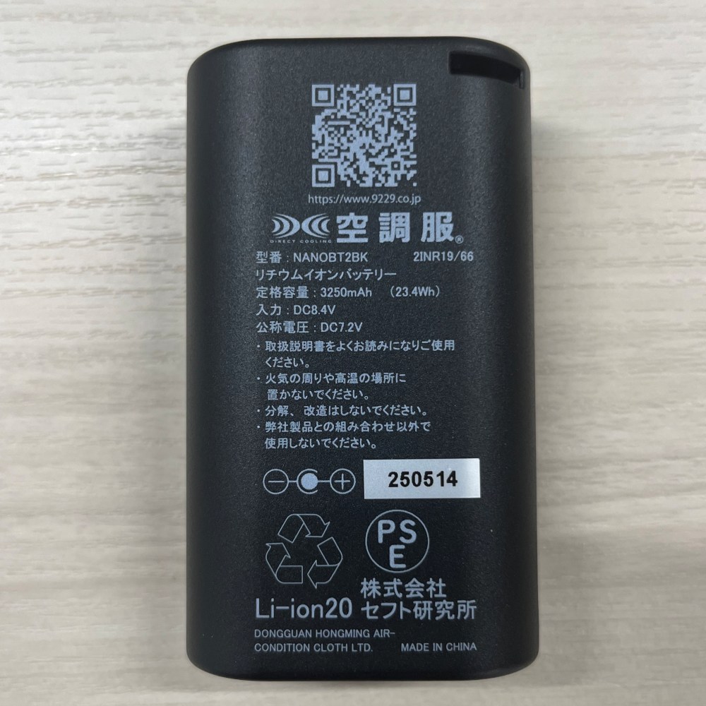 空調服®バッテリー NANOBT2BK 5,544円(税込)