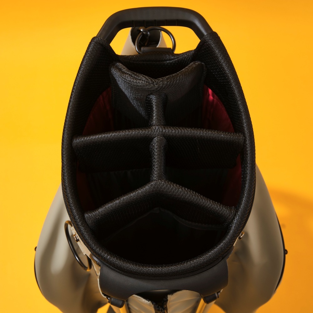 クラブの出し入れがしやすく、整理もしやすい9.2インチ6割口の口枠仕様のビッグジッパーキャディバッグ。