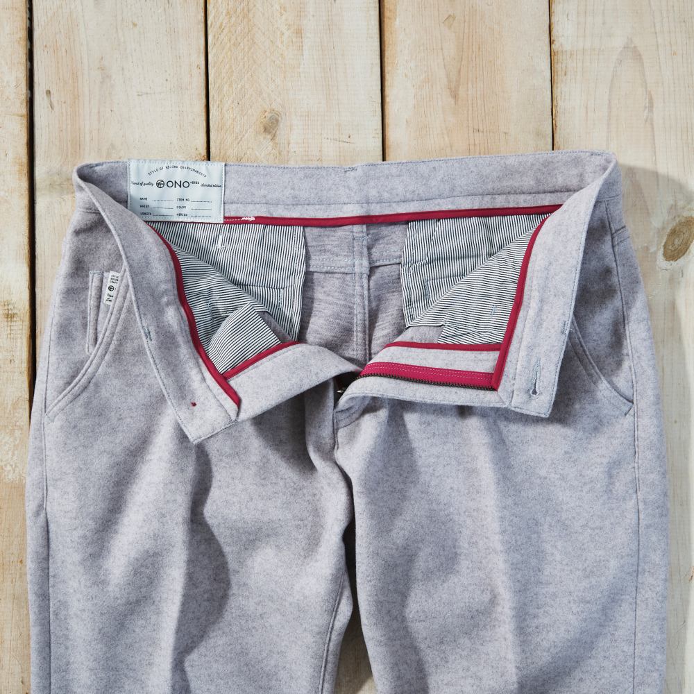 岡山県倉敷市児島に自社工場をもつ、パンツを主力とするファクトリーブランド「ONO+8186」。洗練されたスタイルと、高級感を備えながらも軽やかに着こなせるパンツは、ゴルフはもちろん、幅広いシーンで多くの人に愛用されています。今回は、ウールの風合いを表現したストレッチジャージー素材が魅力的なテーパードパンツのご紹介です。