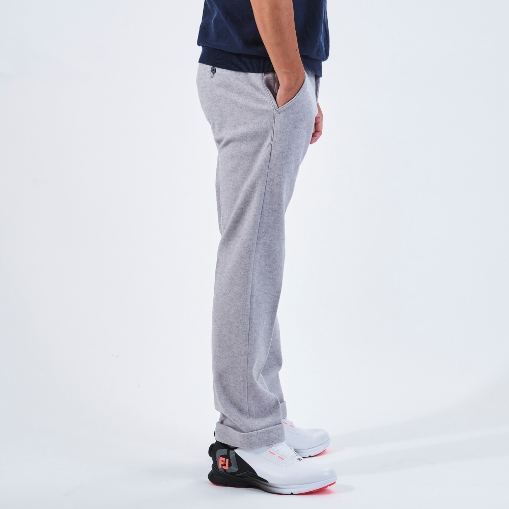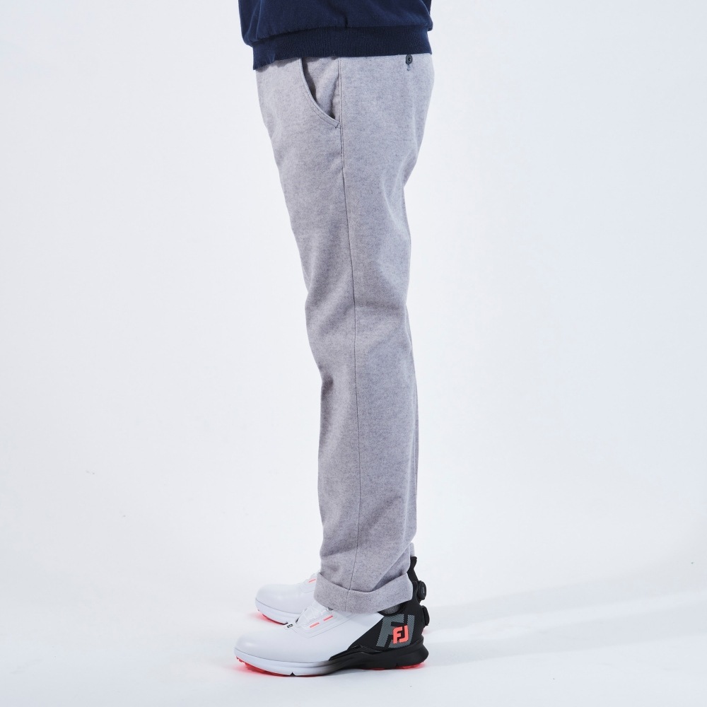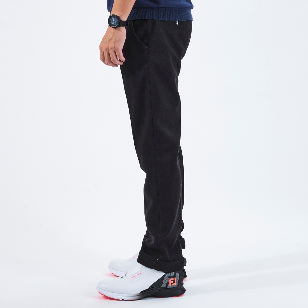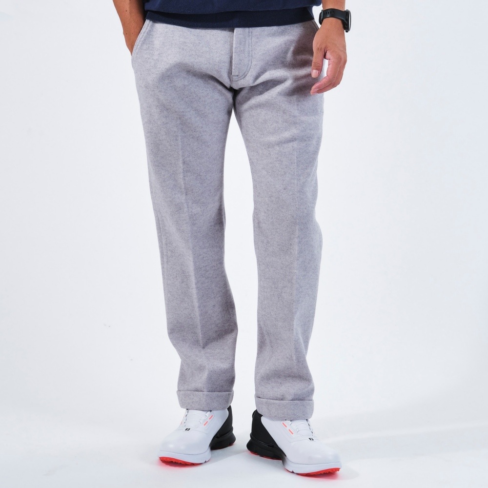 パンツの裾を折り返して縫い付けたダブル仕様。見た目に立体感があり、適度なカジュアル感がゴルフシーンにマッチします。