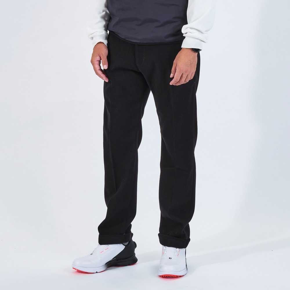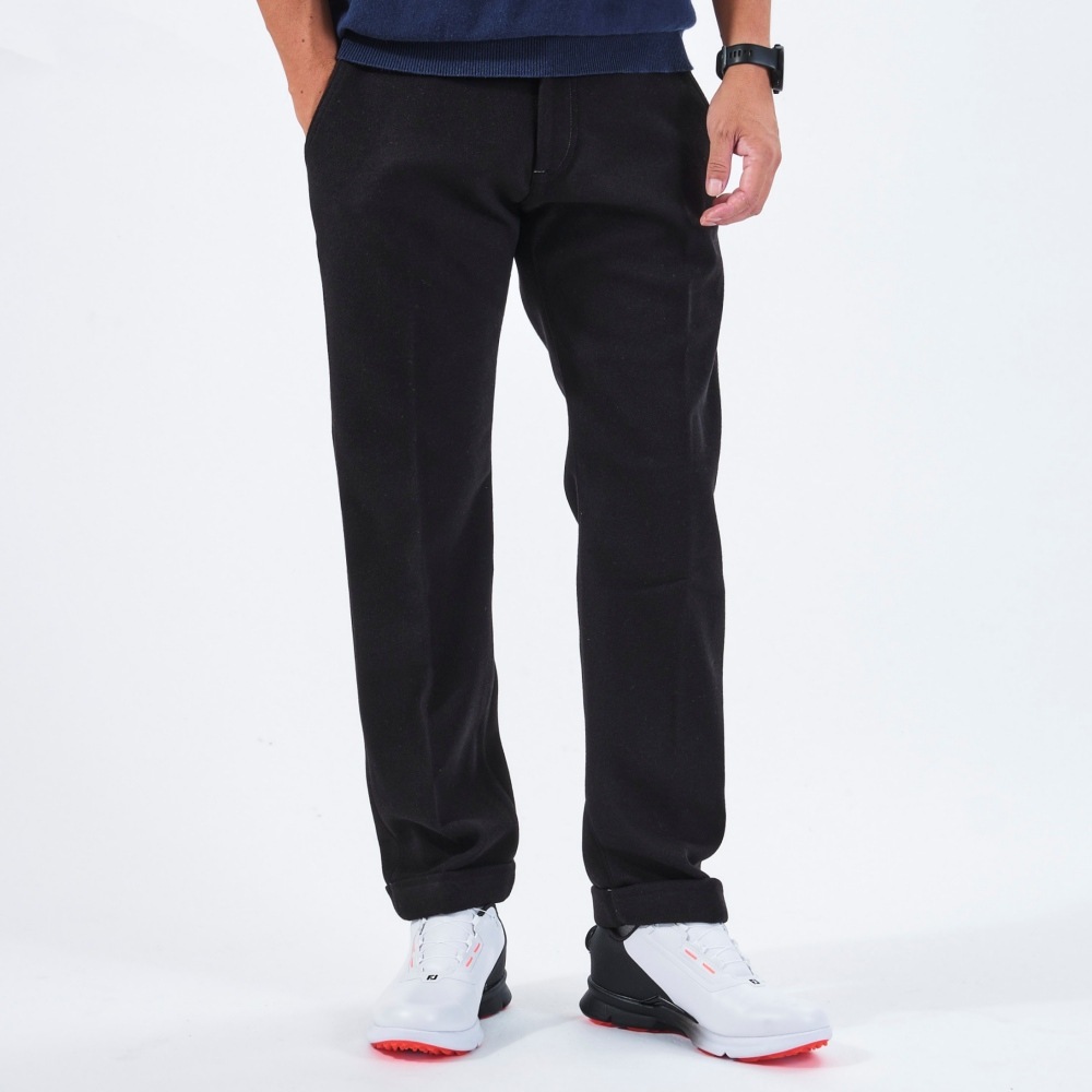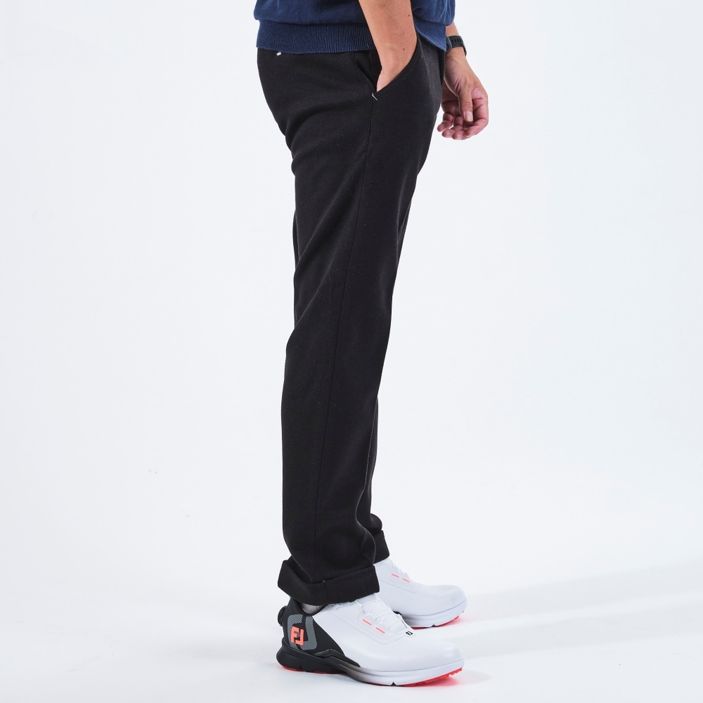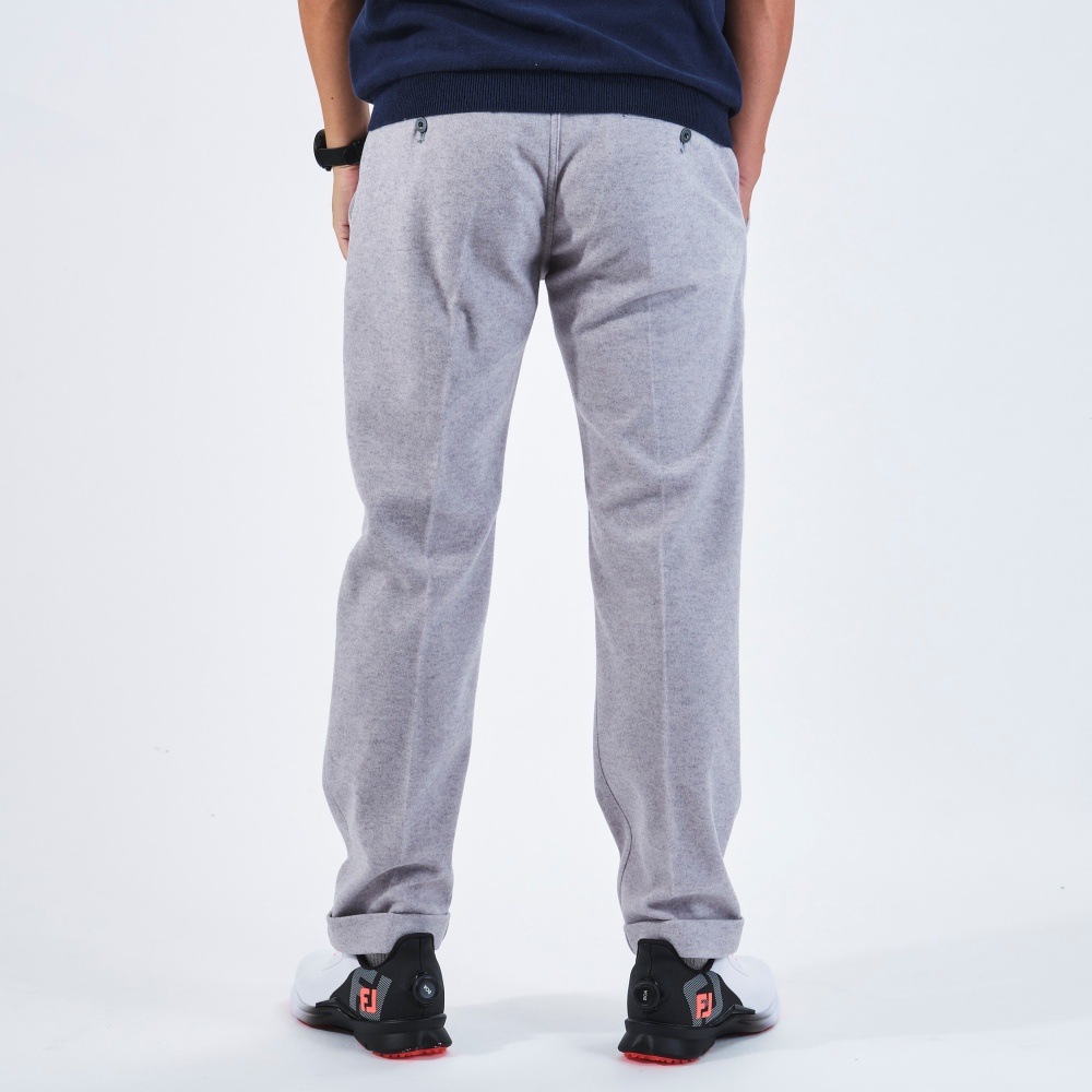 パンツの裾を折り返して縫い付けたダブル仕様。見た目に立体感があり、適度なカジュアル感がゴルフシーンにマッチします。