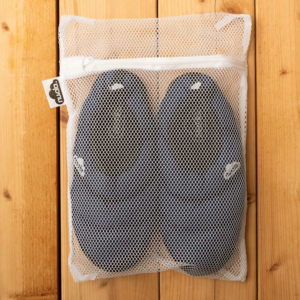 表は撥水性のある素材で、ソールは滑り止め加工(ラバー)になっているので、フローリングの床でも滑りにくく、内履きのルームシューズはもちろんのこと、外履きにも使えます。