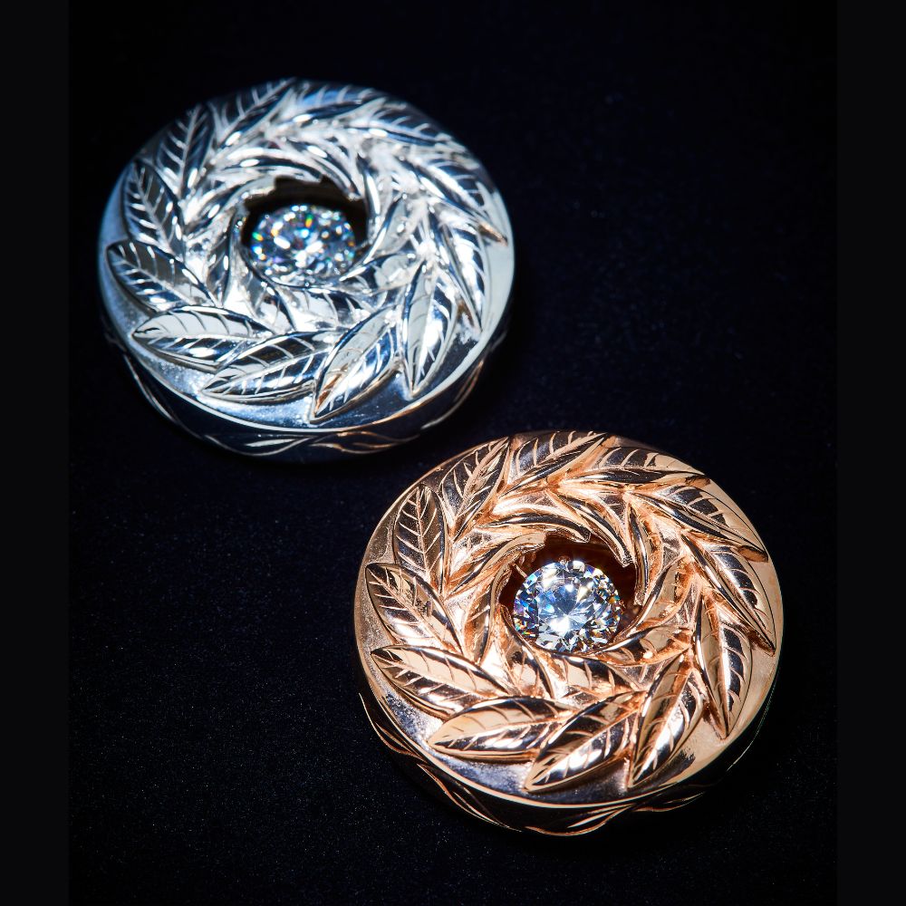 「ジュエリーに使われる高品質素材と、ダンシングストーン®の工法を用いて作ってもらったゴルフダイジェストオリジナルのマーカー。