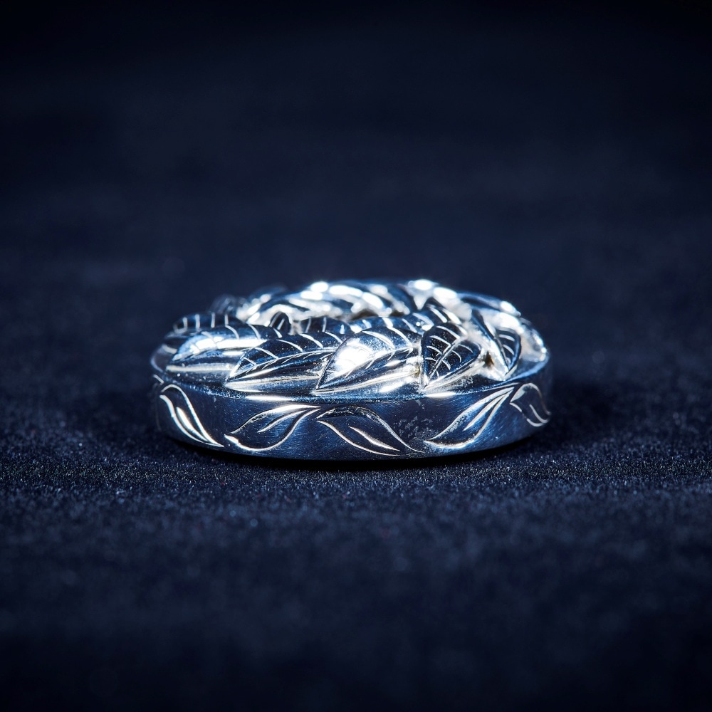 シルバー925の本体にジルコニアが勝者に冠される月桂樹のモチーフのなかでキラキラと輝きます。