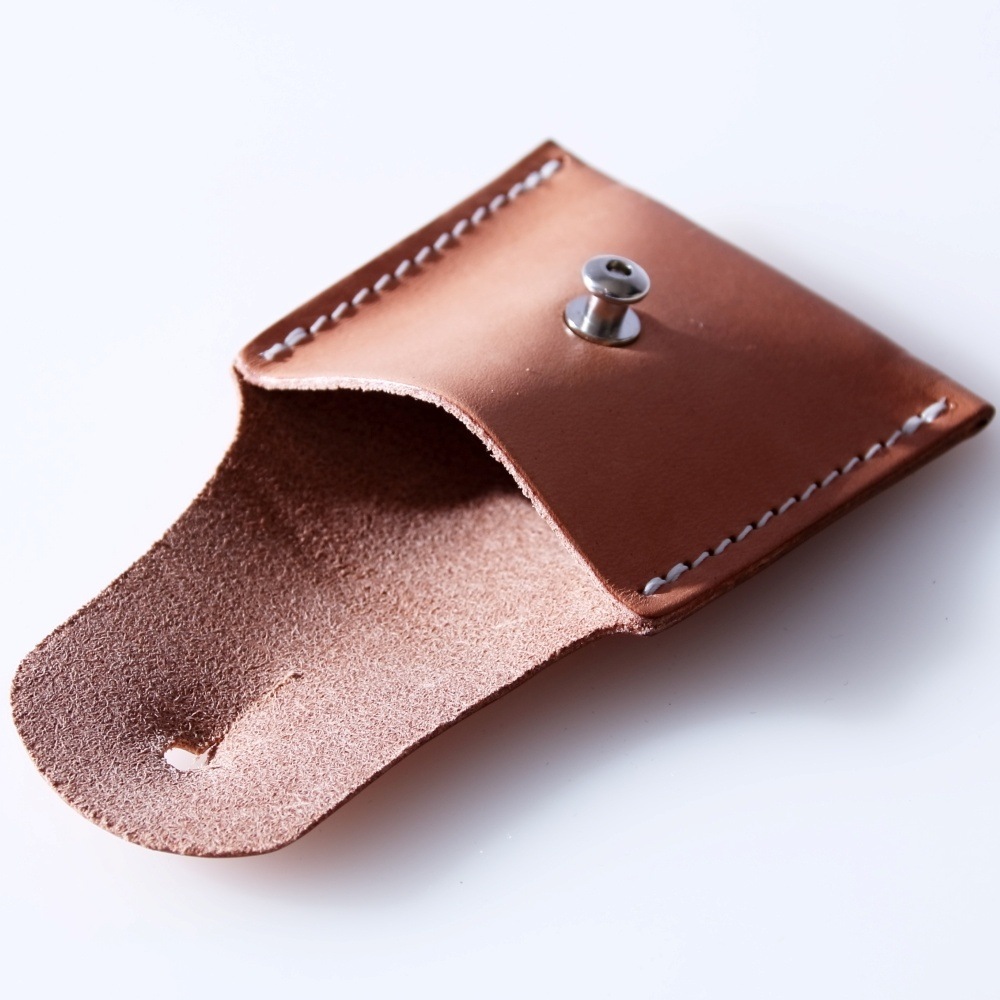ブロンズ(銅)製なので、使ううちに何ともいえない良い感じのくすみ具合になっていく愉しみもあります。本ヌメ革のケースに入ったこだわりの品で、ケースも使ううちに飴色に変化し、こちらも経年変化を楽しめます。