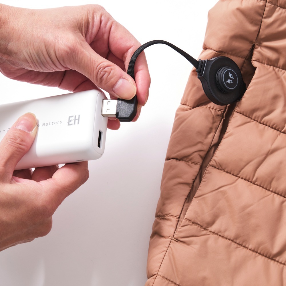 発熱ユニット(別売り)をバッテリー(別売り)につないで背中から即暖