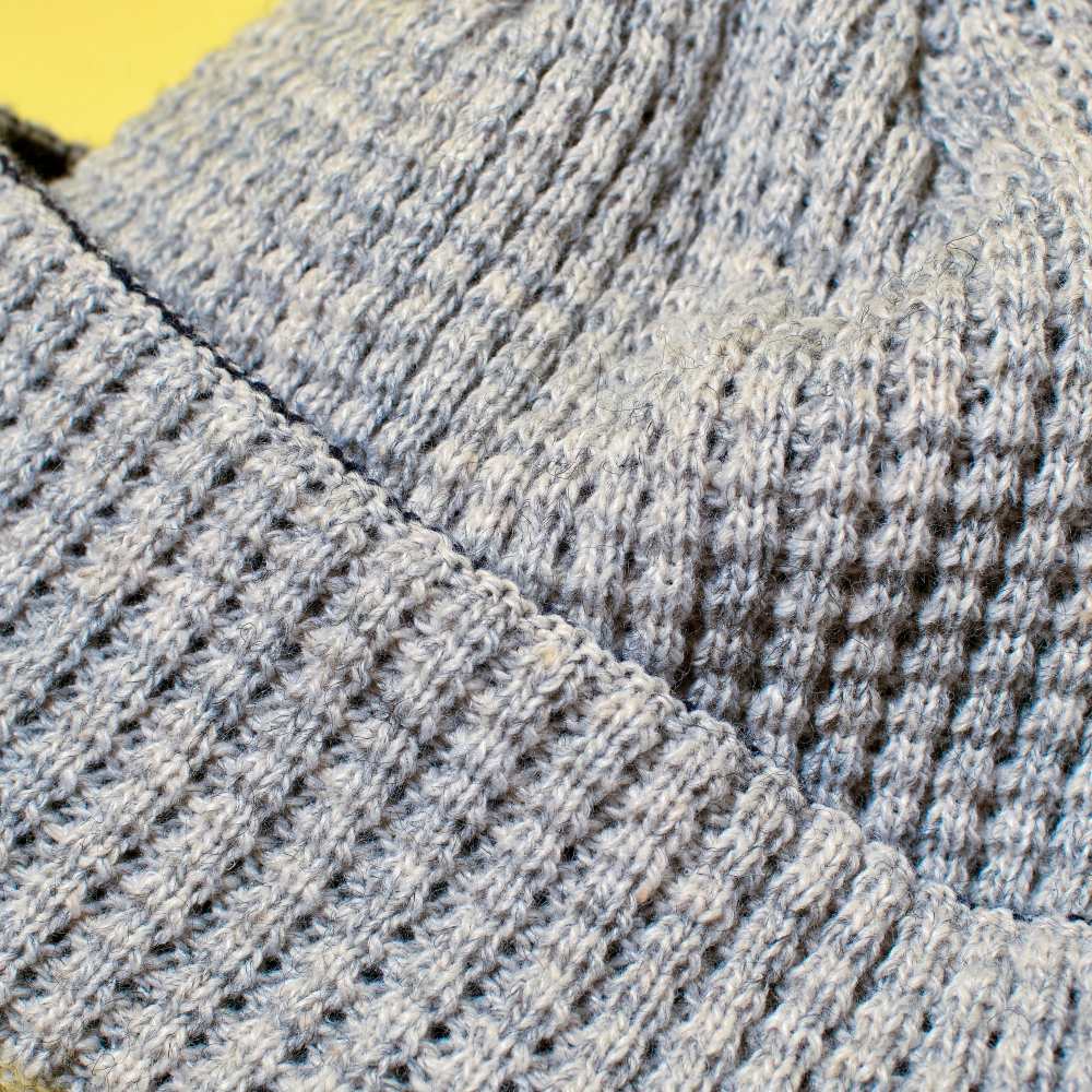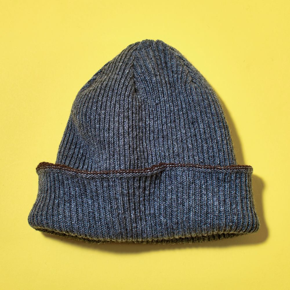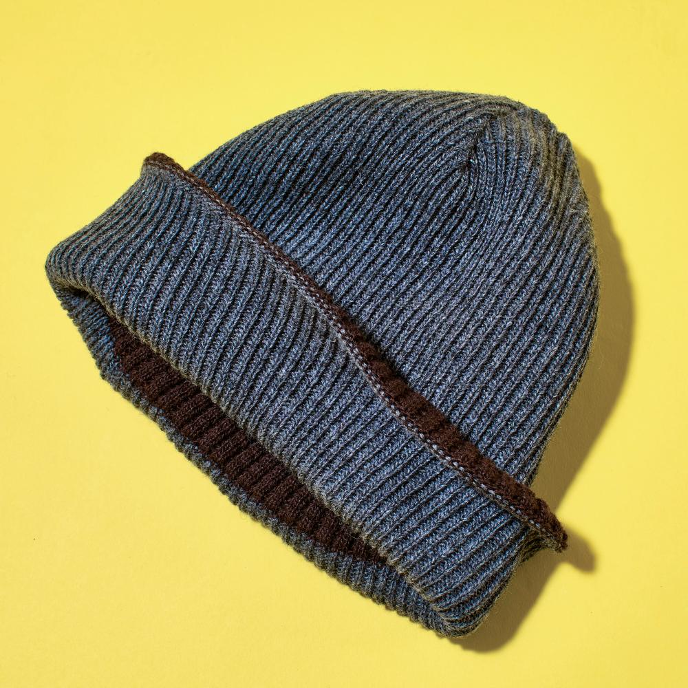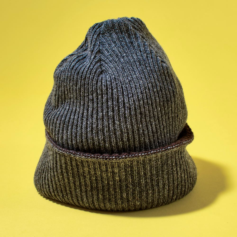 このニットキャップのもう一つの魅力は、しっかりとしたコシのある「アゼ編み(リブ編み)」で仕上げられている点です。