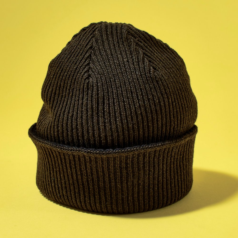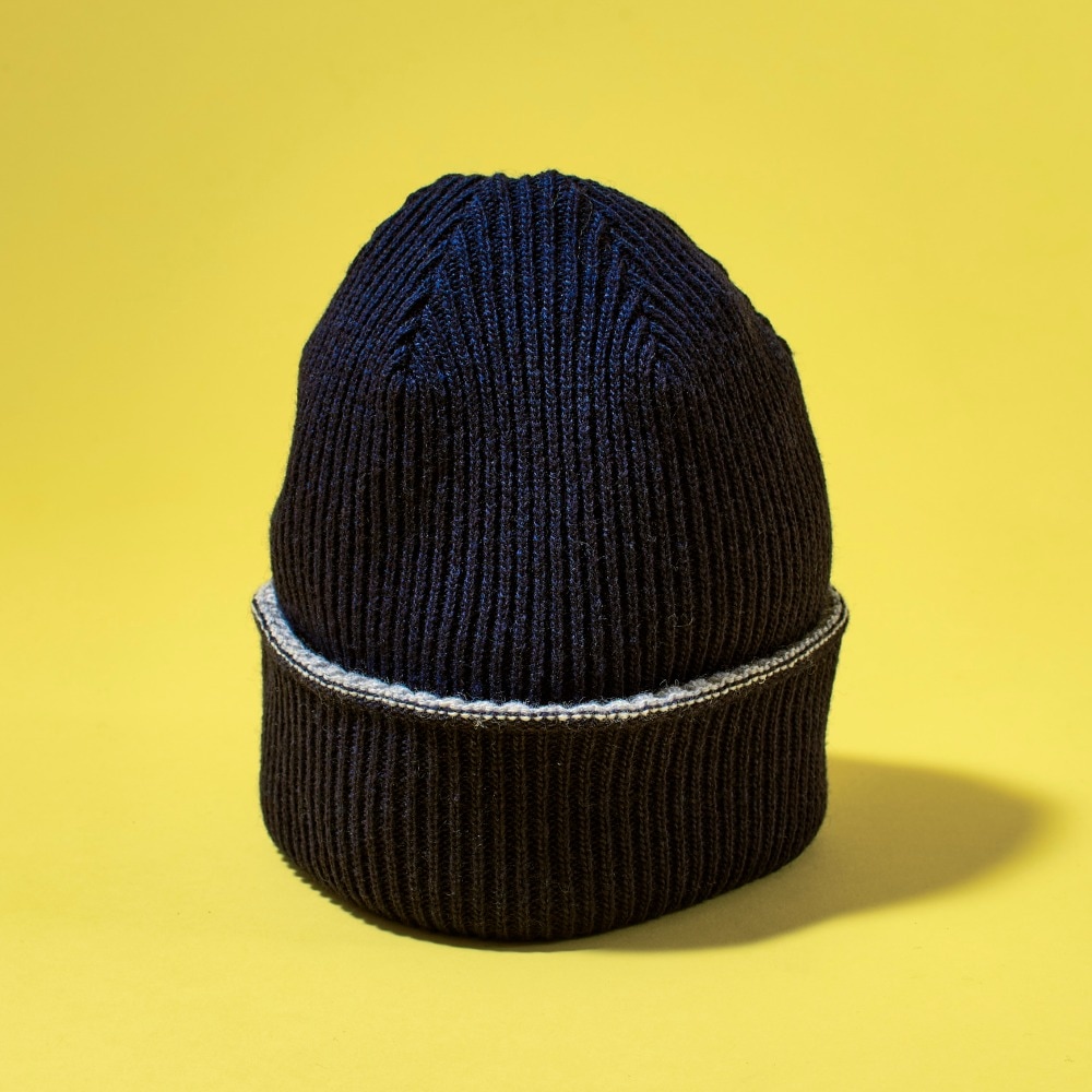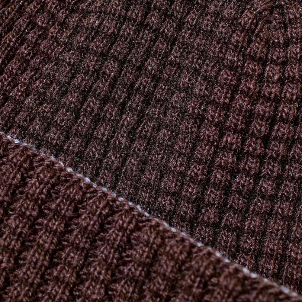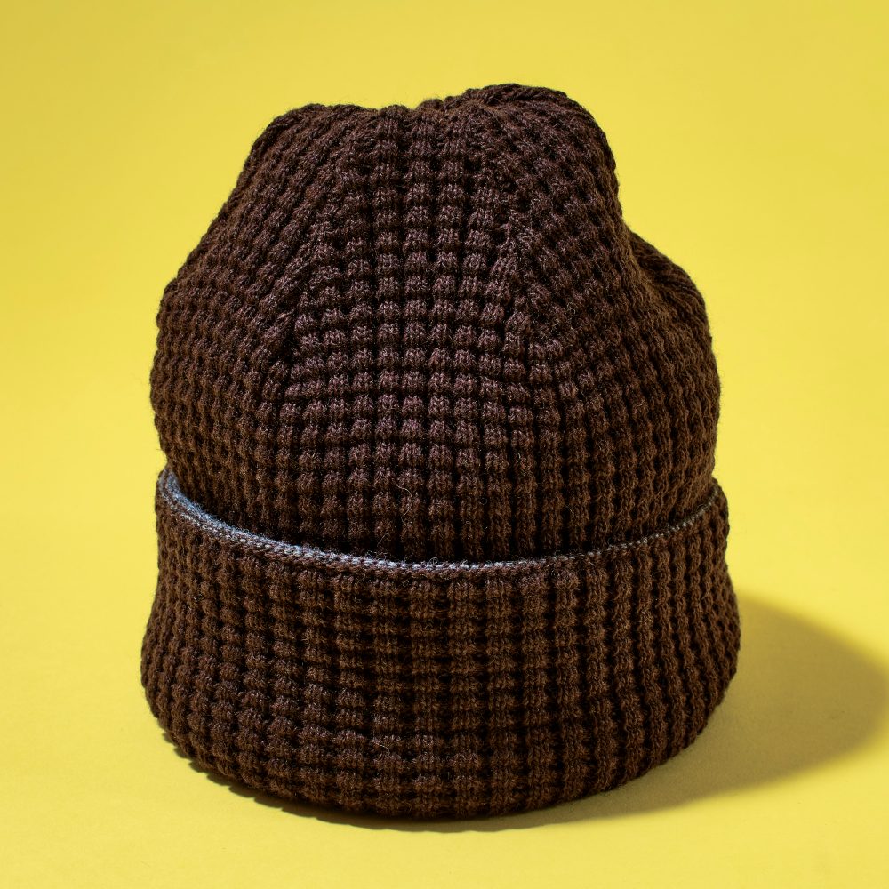 このニットキャップのもう一つの魅力は、しっかりとしたコシのある「アゼ編み(リブ編み)」で仕上げられている点です。