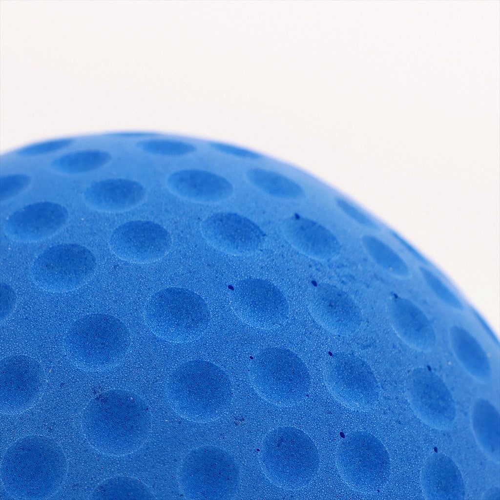 「セフティーボール」は、ディンプル付きでコースボールのイメージが出やすくなっています。1個約8.5グラムの天然ゴム製なので、「スノーボール」に比べてしっかりめの打感を味わえます。室内のアプローチ練習でも、音が気になりません。ドライバーで打った時の参考飛距離は約50メートル。3個入りで550円(税込)