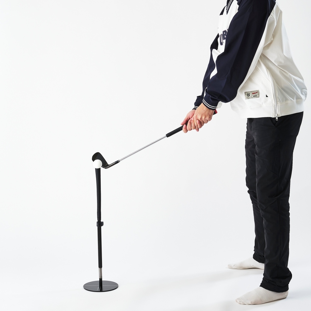 最初はベルトの高さで練習し、上手く打てるようになったら、膝の高さ、足首の高さと徐々にティーの高さを下げて行くと理想のスウィングを手に入れることができ、ボディーターンや下半身の使い方が練習できます。